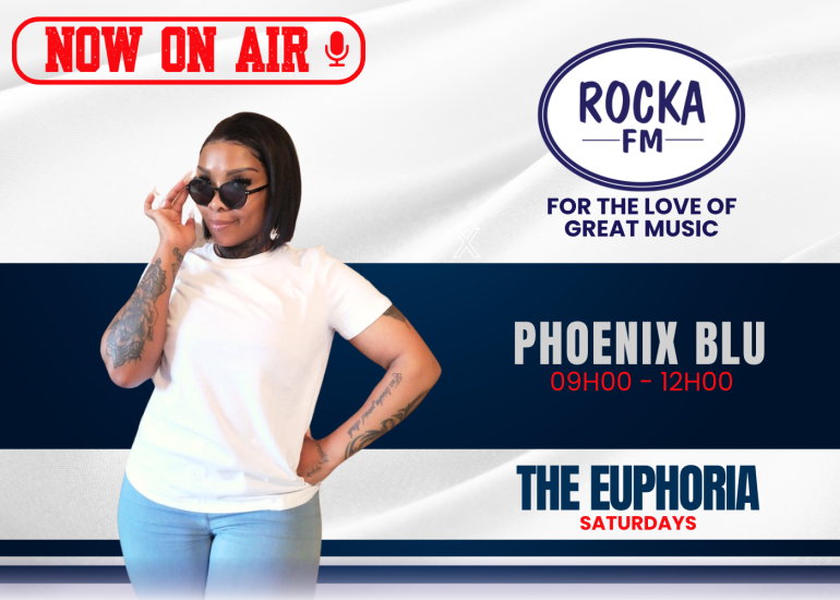 Music THE EUPHORIA more_vert THE EUPHORIA 09H00 – 12H00 PHOENIX BLU Get ready to reconnect with your 90s self alongside the vibrant Xoliswa Dhlomo, also known as Phoenix Blu. close